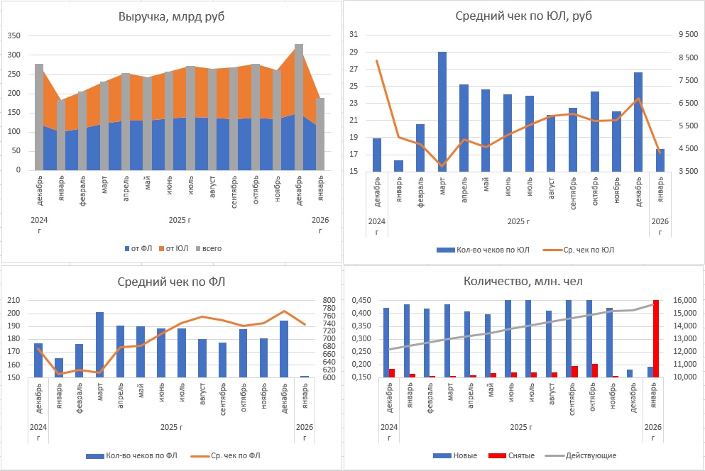 | Кол-во чеков ФЛ, млн шт | 177 | 165 | 176 | 201 | 194 | 152 |